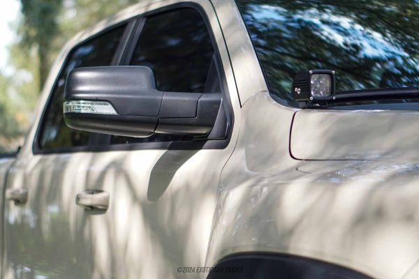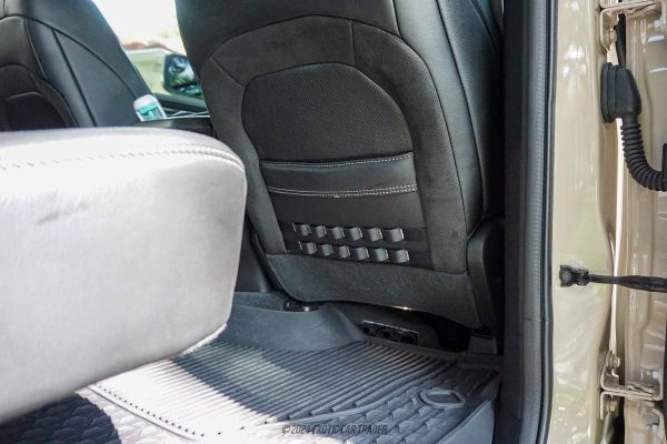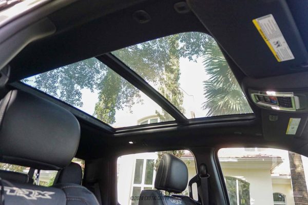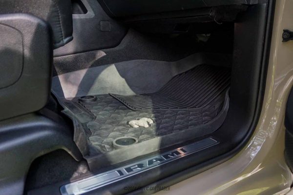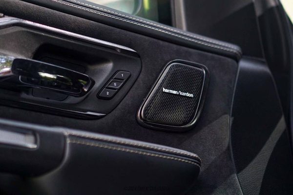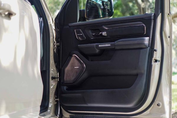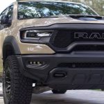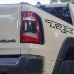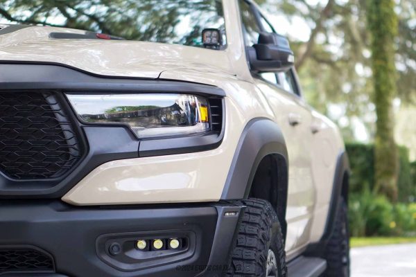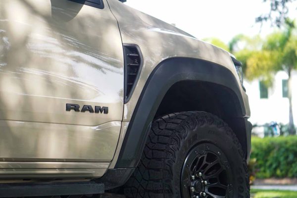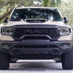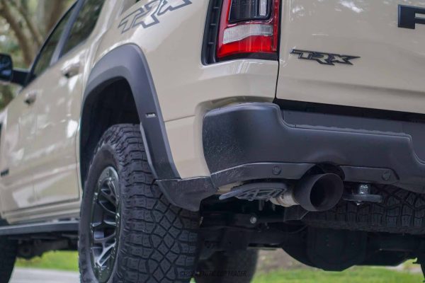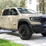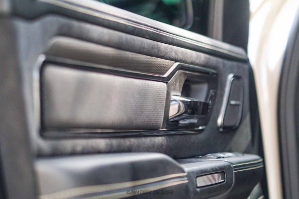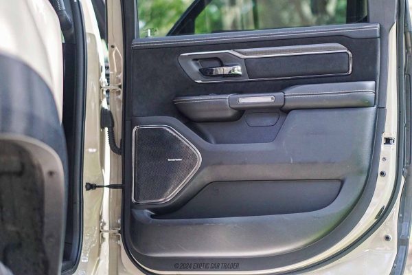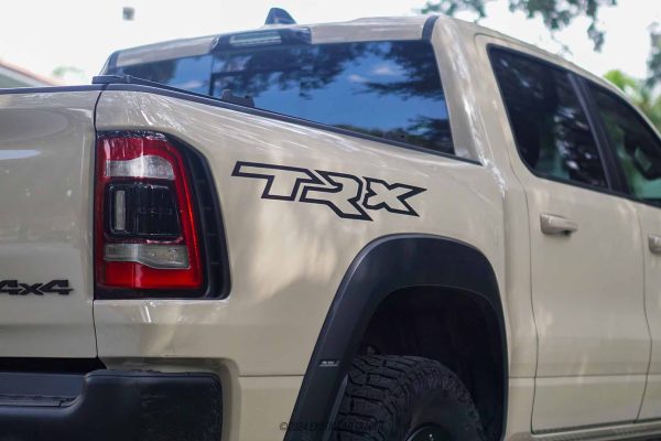 Additional options include the TRX Sandblast Edition, “TRX” Exterior Graphics by Mopar, and “TRX” Hood Graphics by Mopar. The interior features Real Carbon Fiber accents, a Leather and Carbon Flat-Bottom Steering Wheel, and Luxury Front Door Trim Panel.