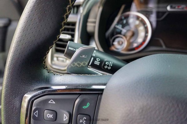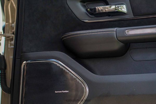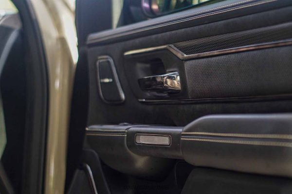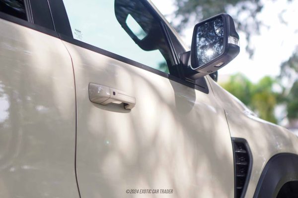 The exterior is finished in Mojave Sand Clear-Coat, while the interior features a Black leather-trimmed cabin.