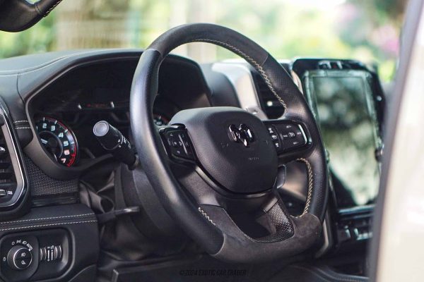 The Ram 1500 TRX is known for its capabilities and features. This particular model offers a comfortable and technologically advanced driving experience, with amenities such as a premium sound system and advanced safety features.
